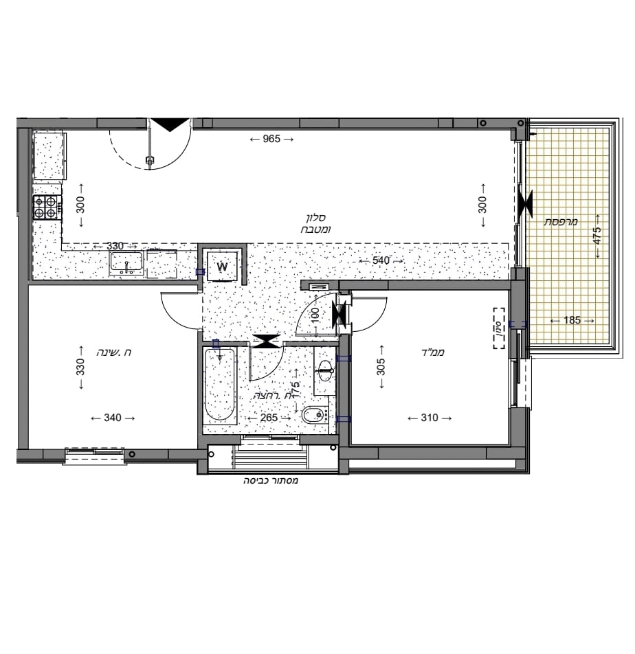 דירת 4 חדרים 107.5 מ״ר בנוי עם מרפסת שמש 12 מ״ר