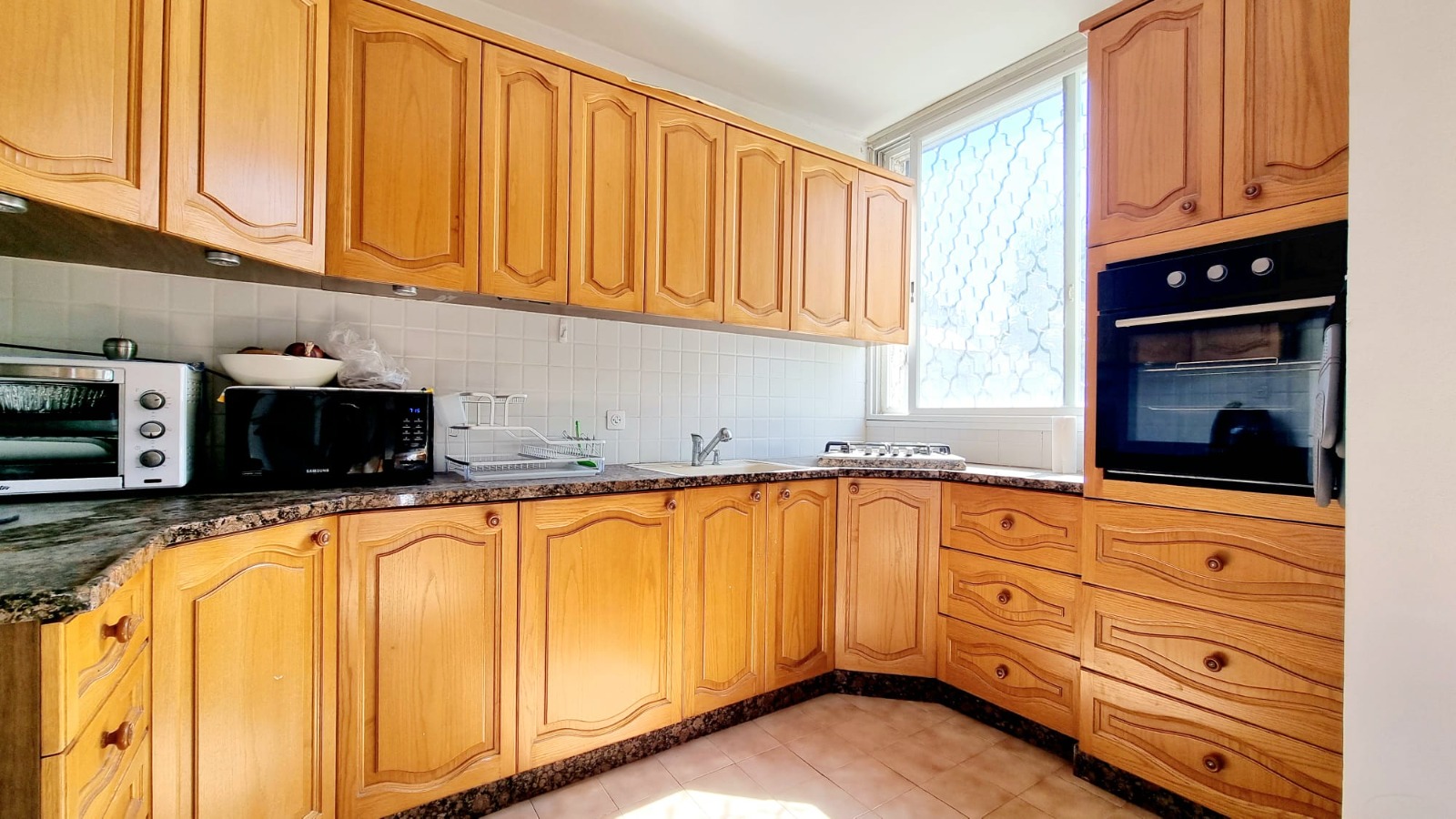 מטבח מרווח עם תנור וכיריים גז 🥣🍳🍜